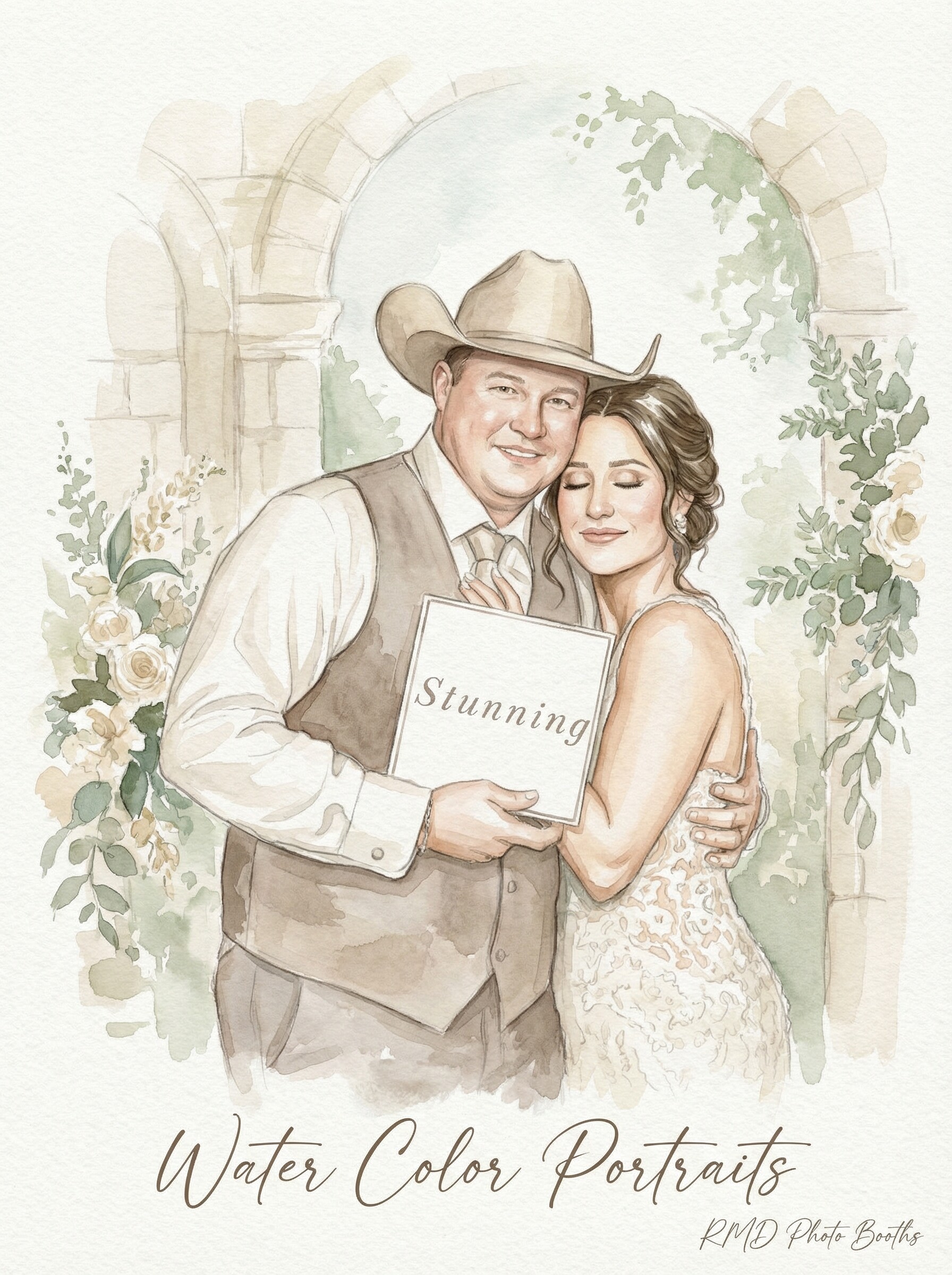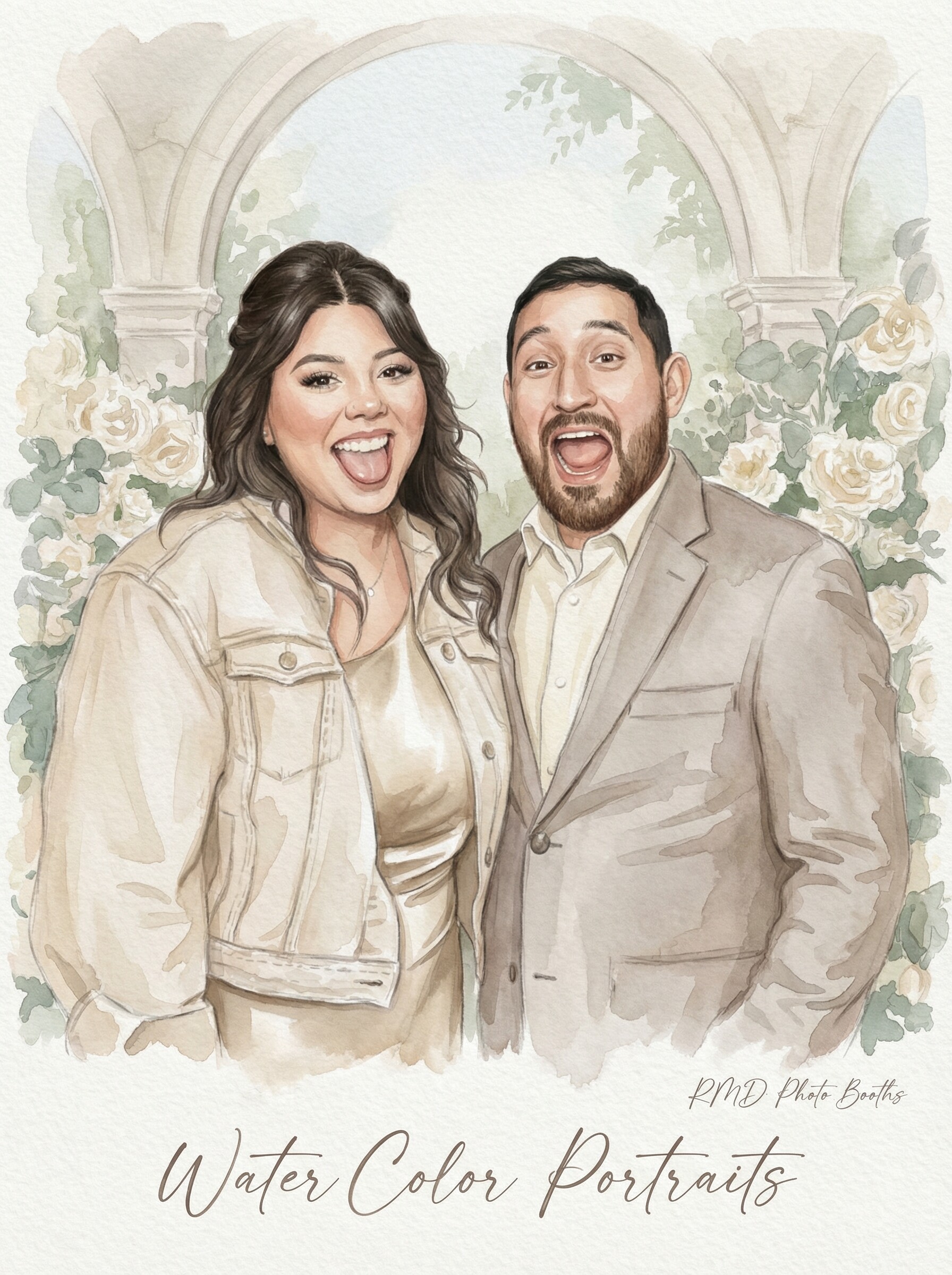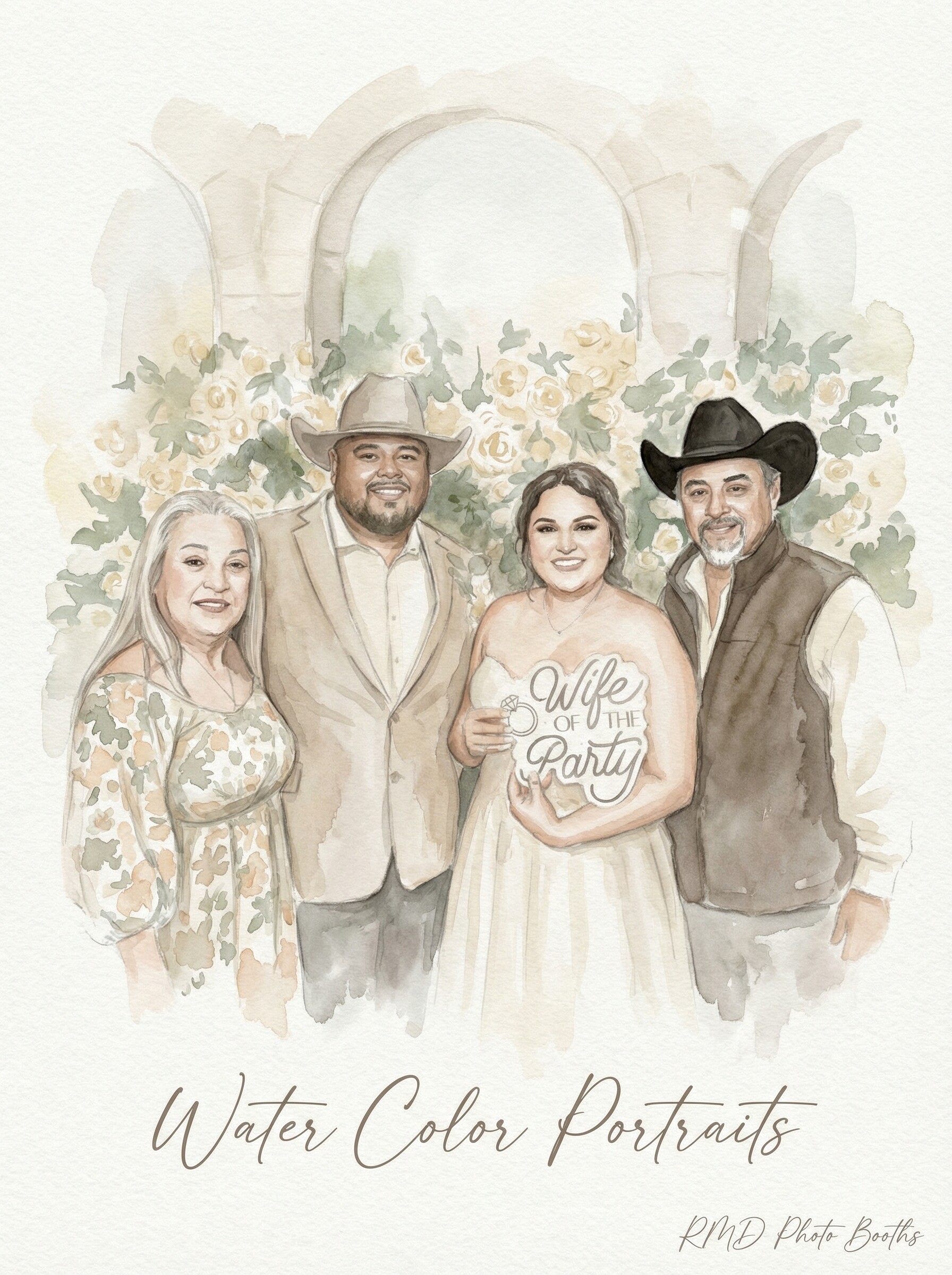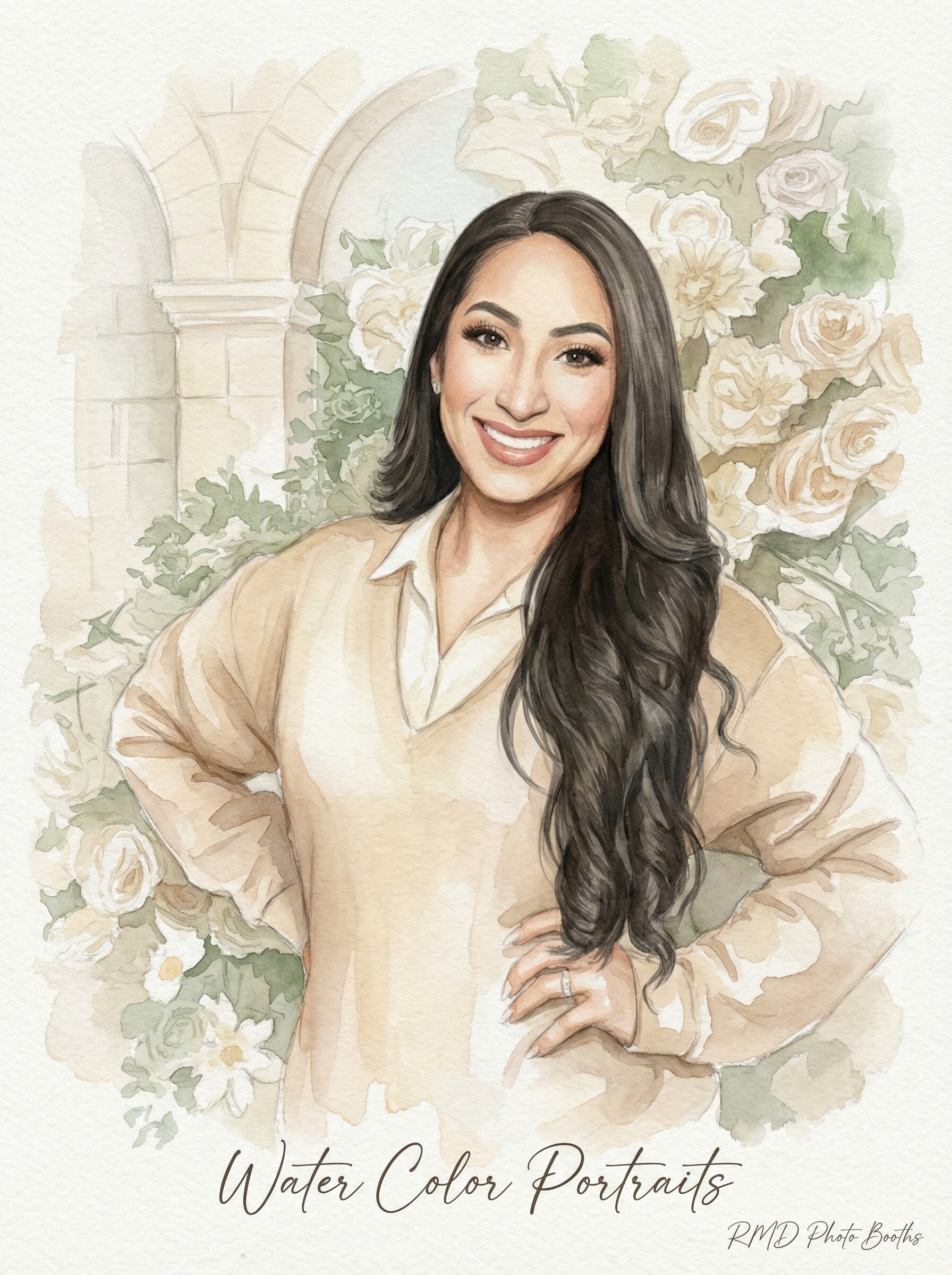 RMD originated AI water color sketches in late 2023 – Step into the future of artistic keepsakes with our AI Water Color Portraits, the very first of their kind in South Texas! This groundbreaking feature uses advanced artificial intelligence to create stunning, hand-painted-style portraits in real time—adding a truly unique and memorable touch to any event.