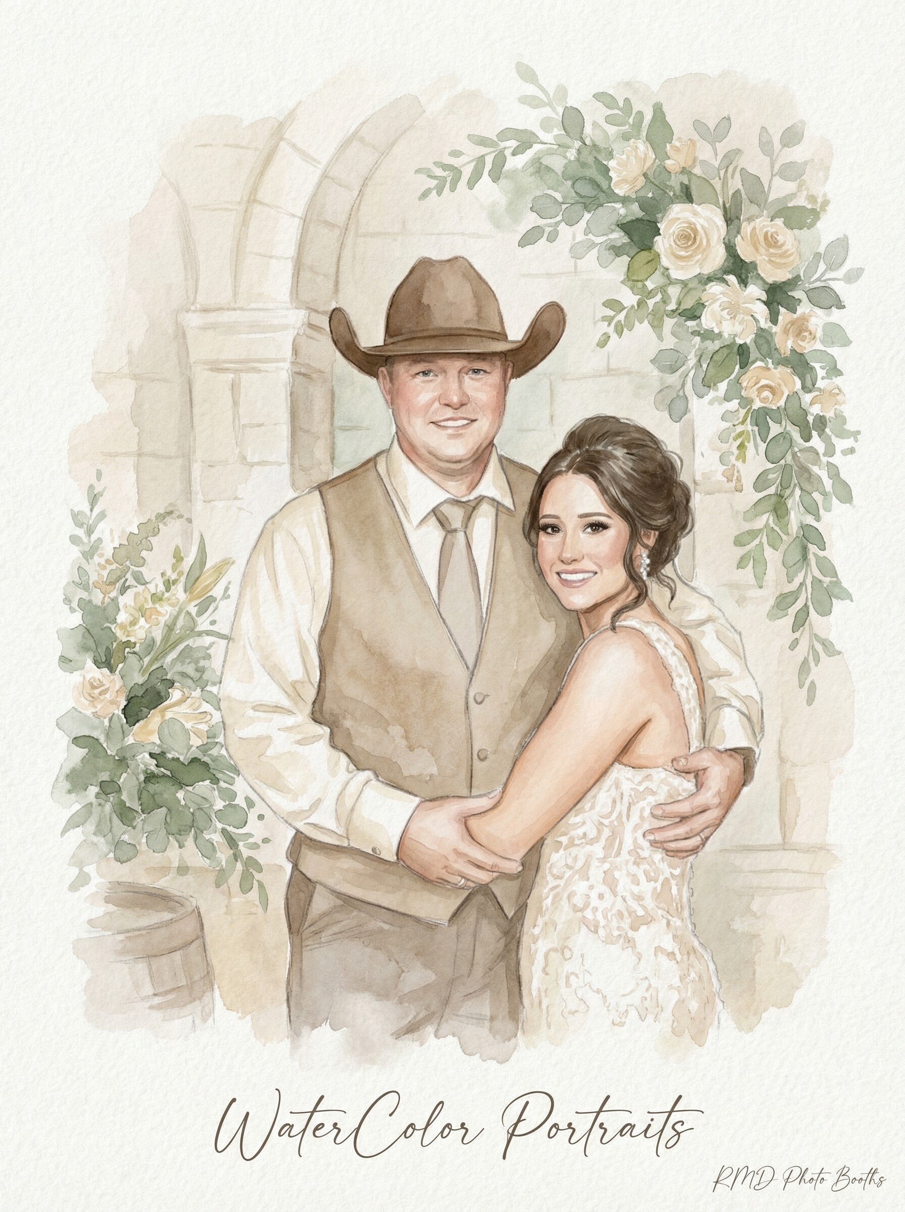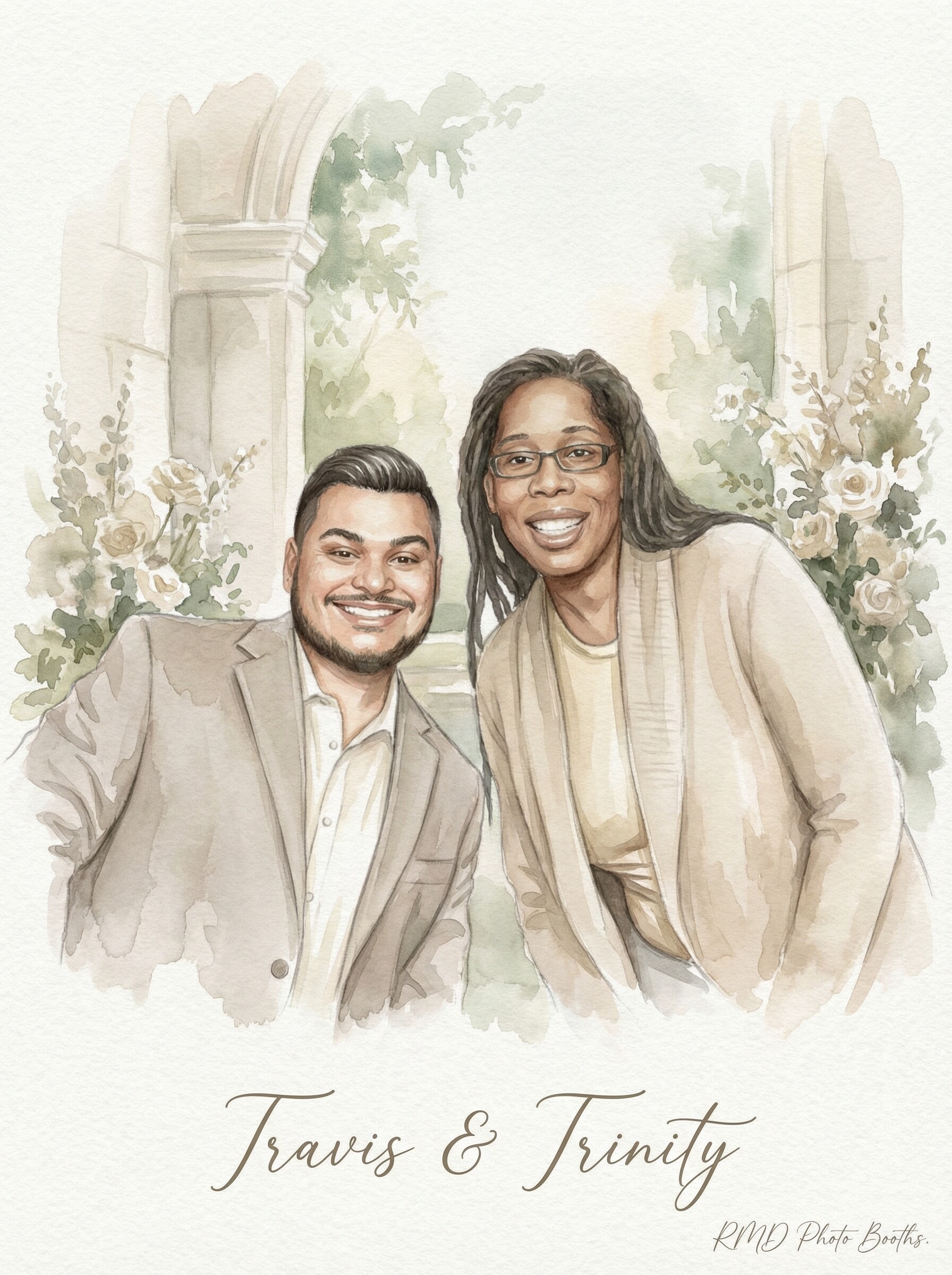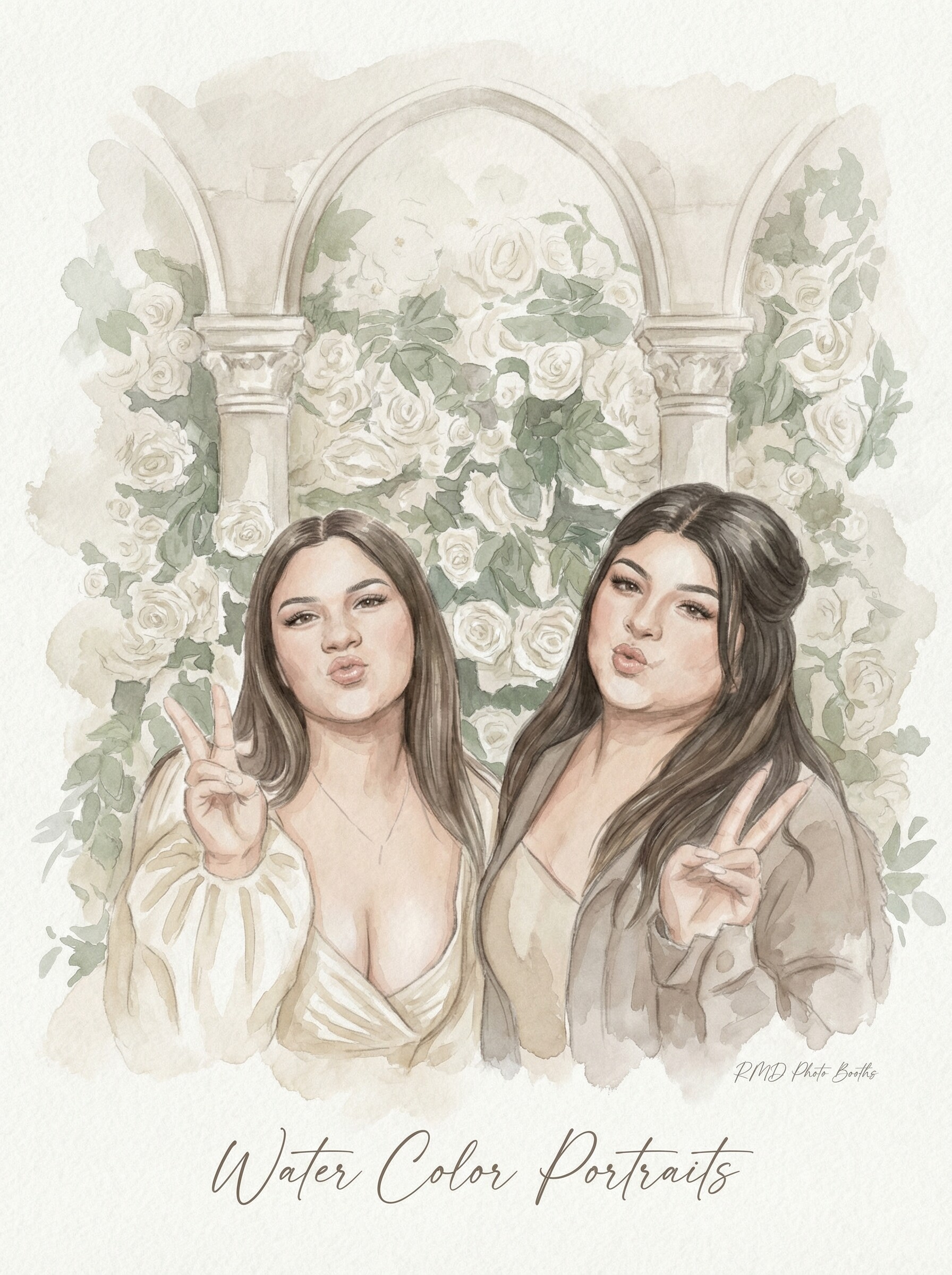 RMD originated AI water color sketches in late 2023 – Step into the future of artistic keepsakes with our AI Water Color Portraits, the very first of their kind in South Texas! This groundbreaking feature uses advanced artificial intelligence to create stunning, hand-painted-style portraits in real time—adding a truly unique and memorable touch to any event.