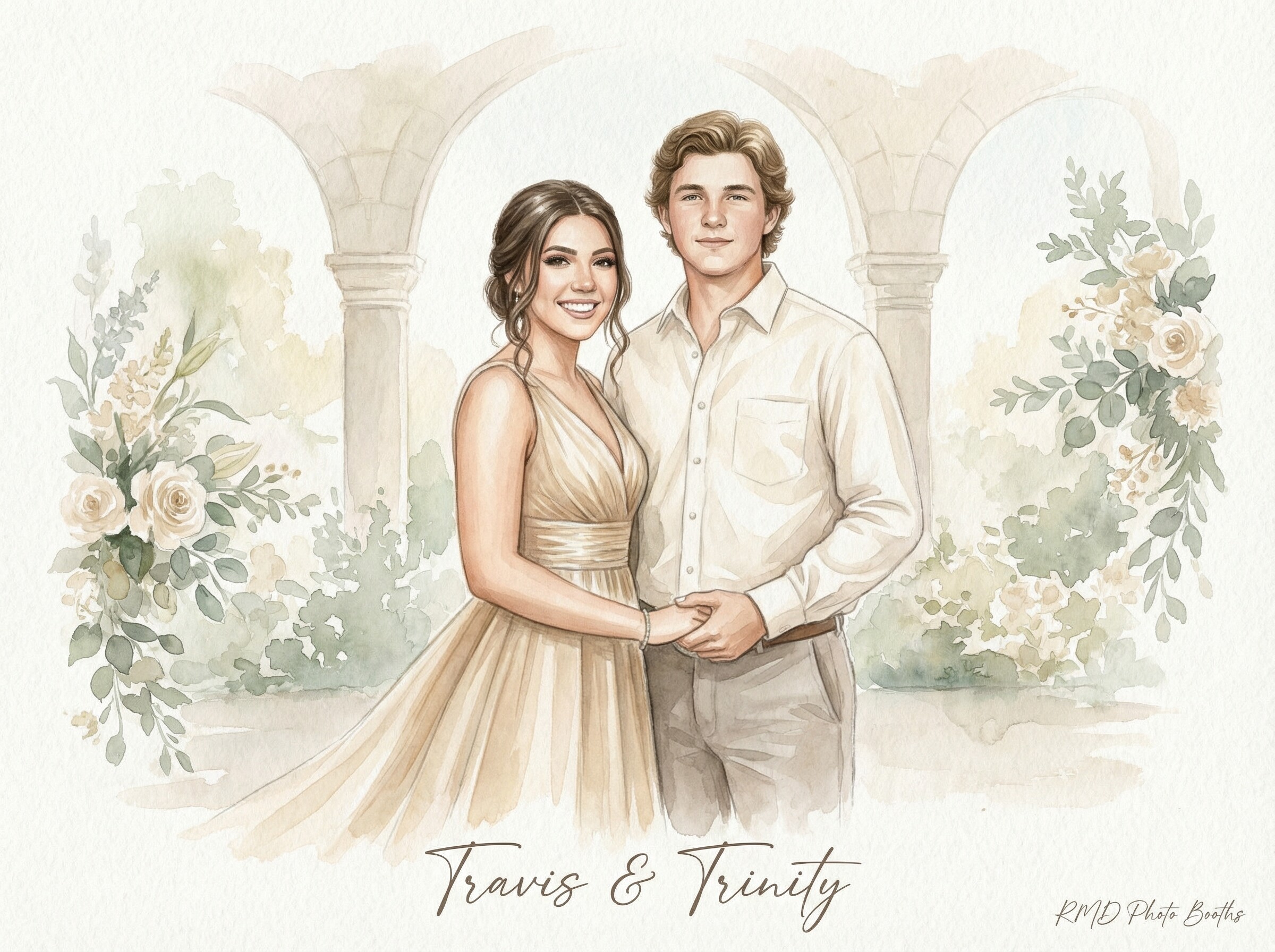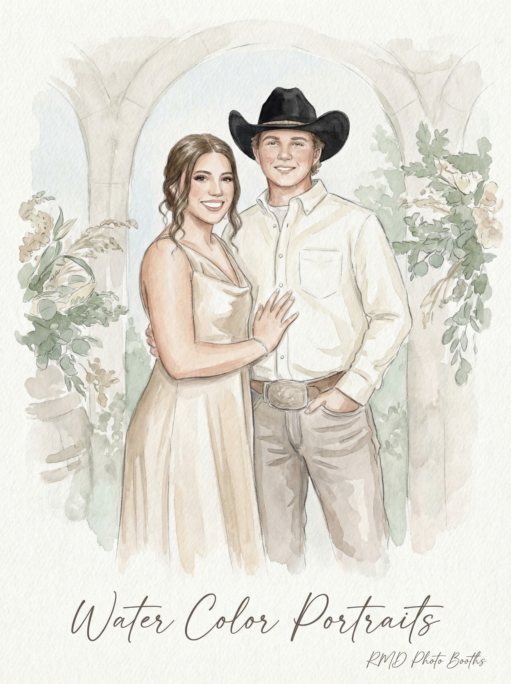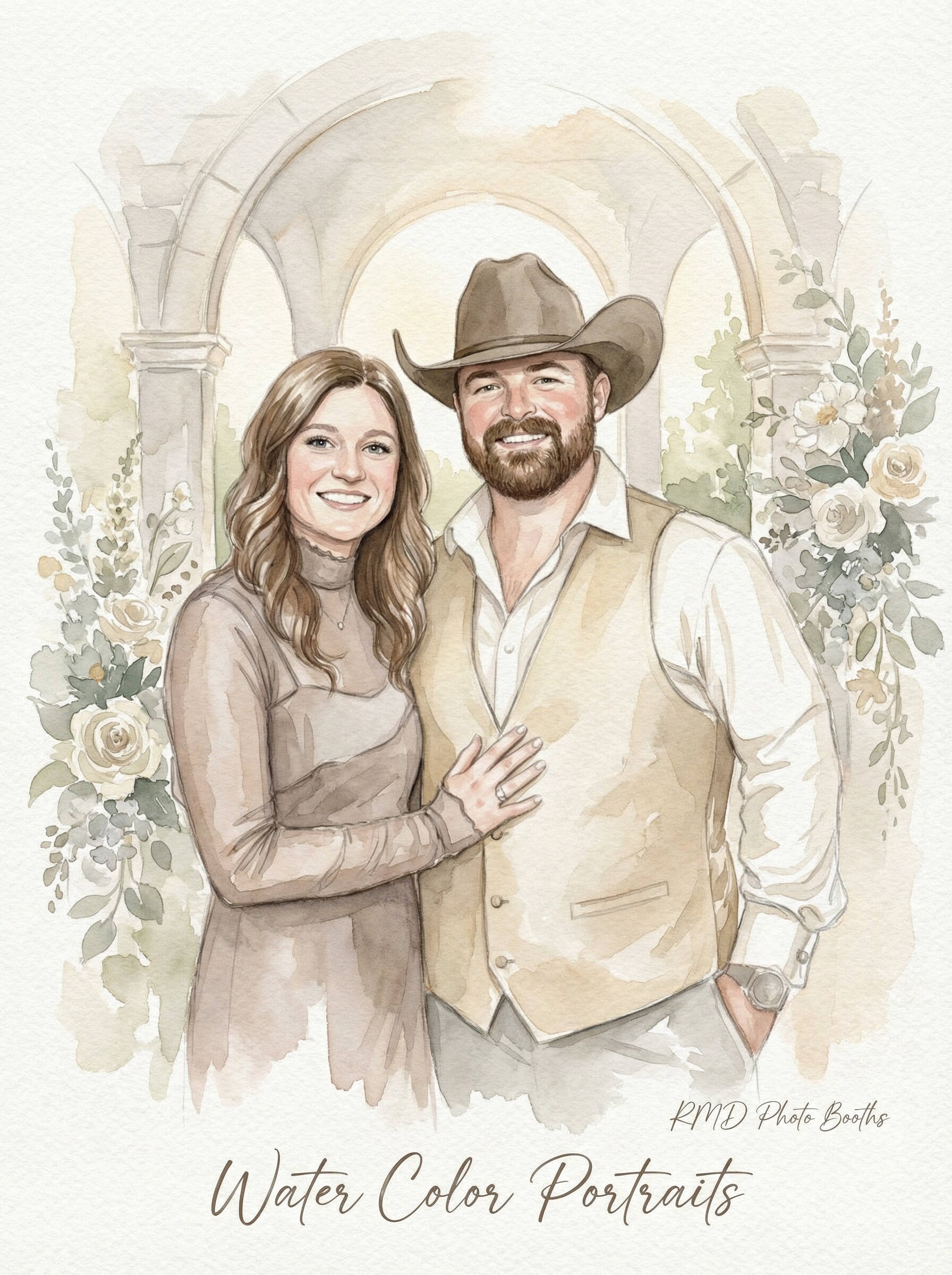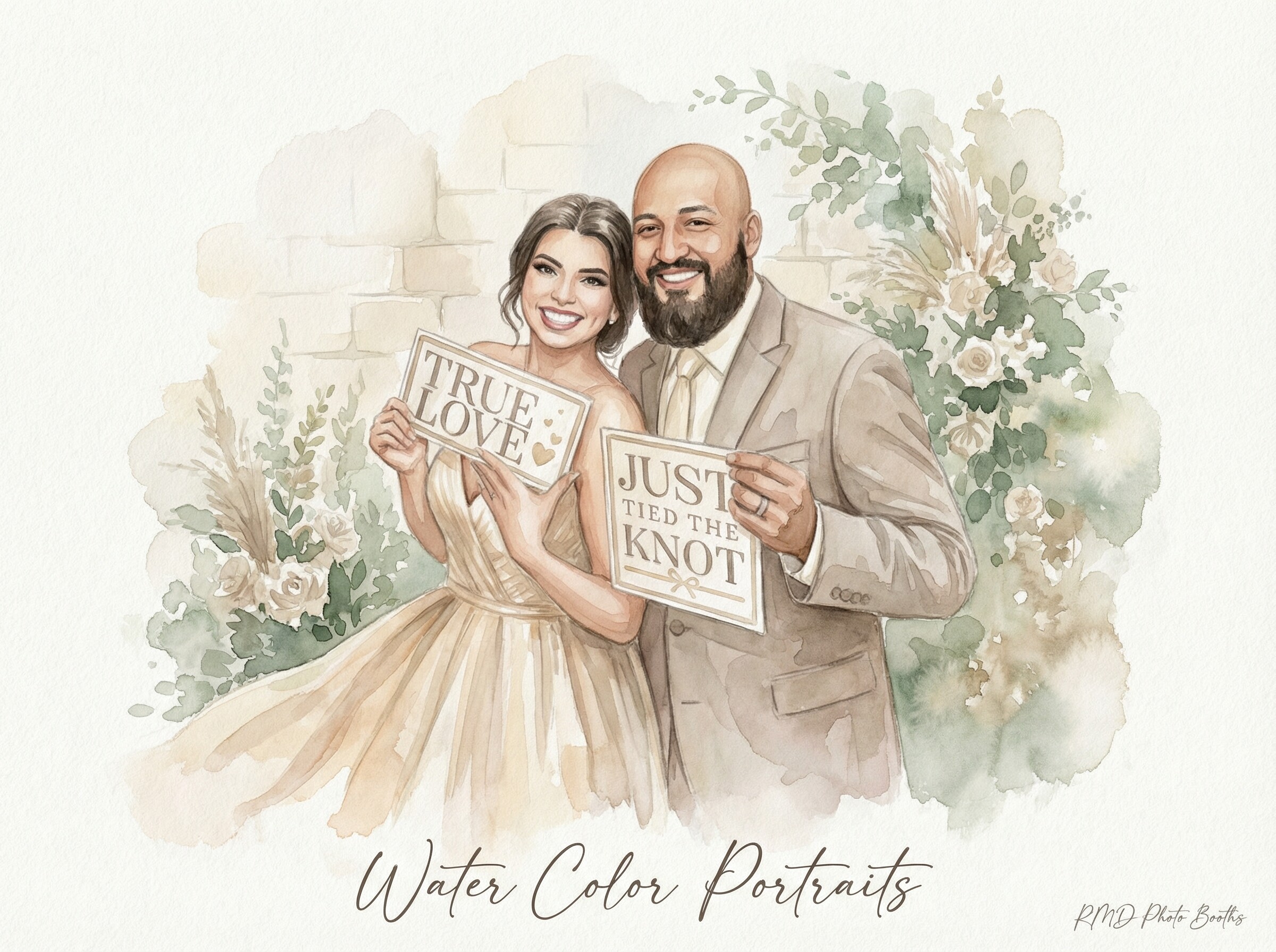 RMD originated AI water color sketches in late 2023 – Step into the future of artistic keepsakes with our AI Water Color Portraits, the very first of their kind in South Texas! This groundbreaking feature uses advanced artificial intelligence to create stunning, hand-painted-style portraits in real time—adding a truly unique and memorable touch to any event.